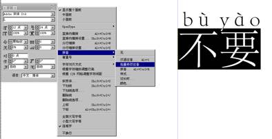 [注意:只要用黑箭头或文字工具选择文本对象,就可以看到"拼音"下拉子菜单.]