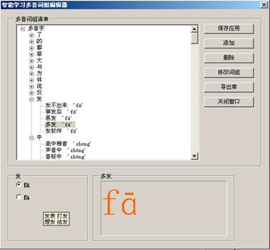 2、只需要一个按钮,就自动分词、自动分析多音词组、自动智能学习、马上应用学习成果,速度飞快。